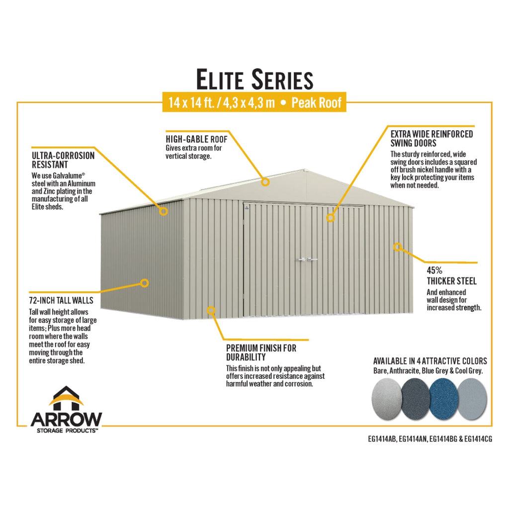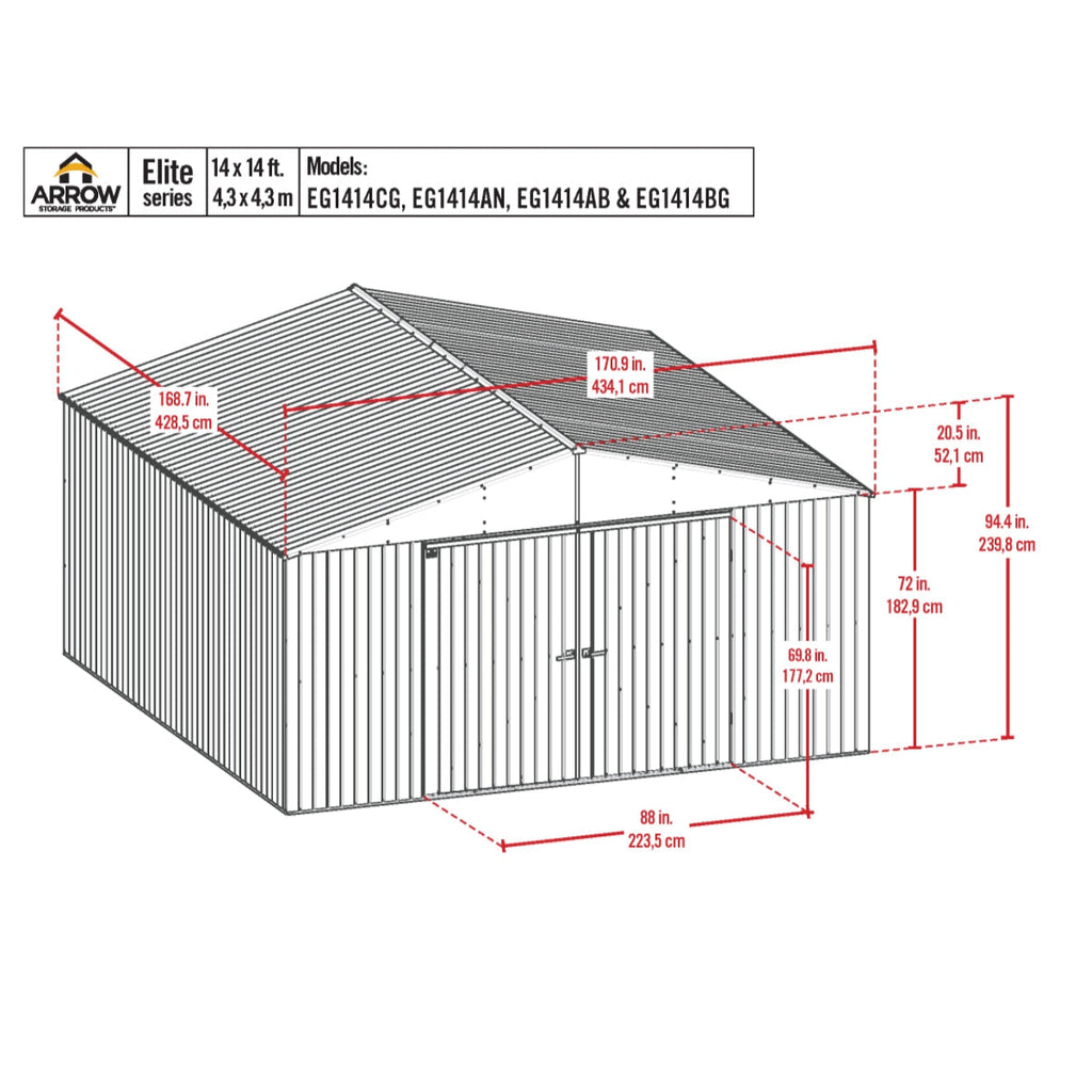 Arrow Elite Steel Storage Shed 14 x 14 ft.