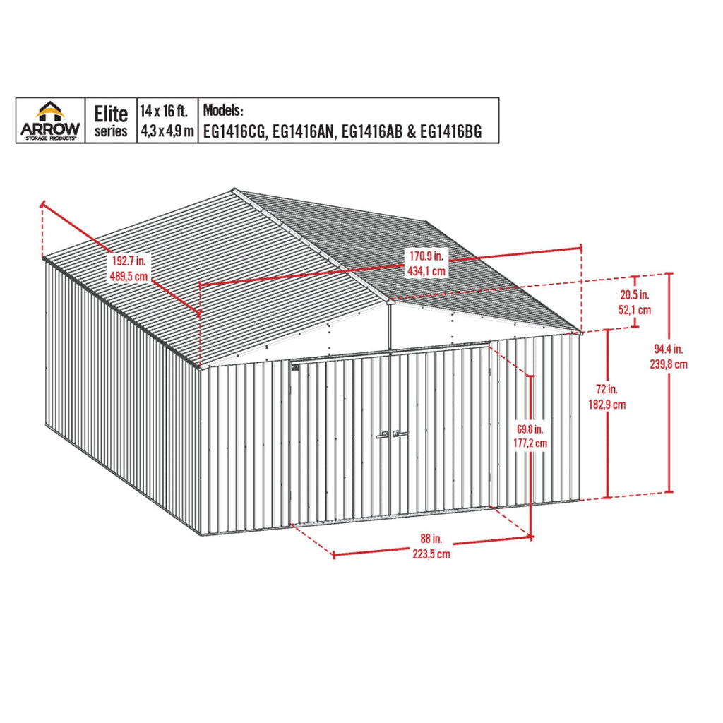 Arrow Elite Steel Storage Shed 14 x 16 ft.