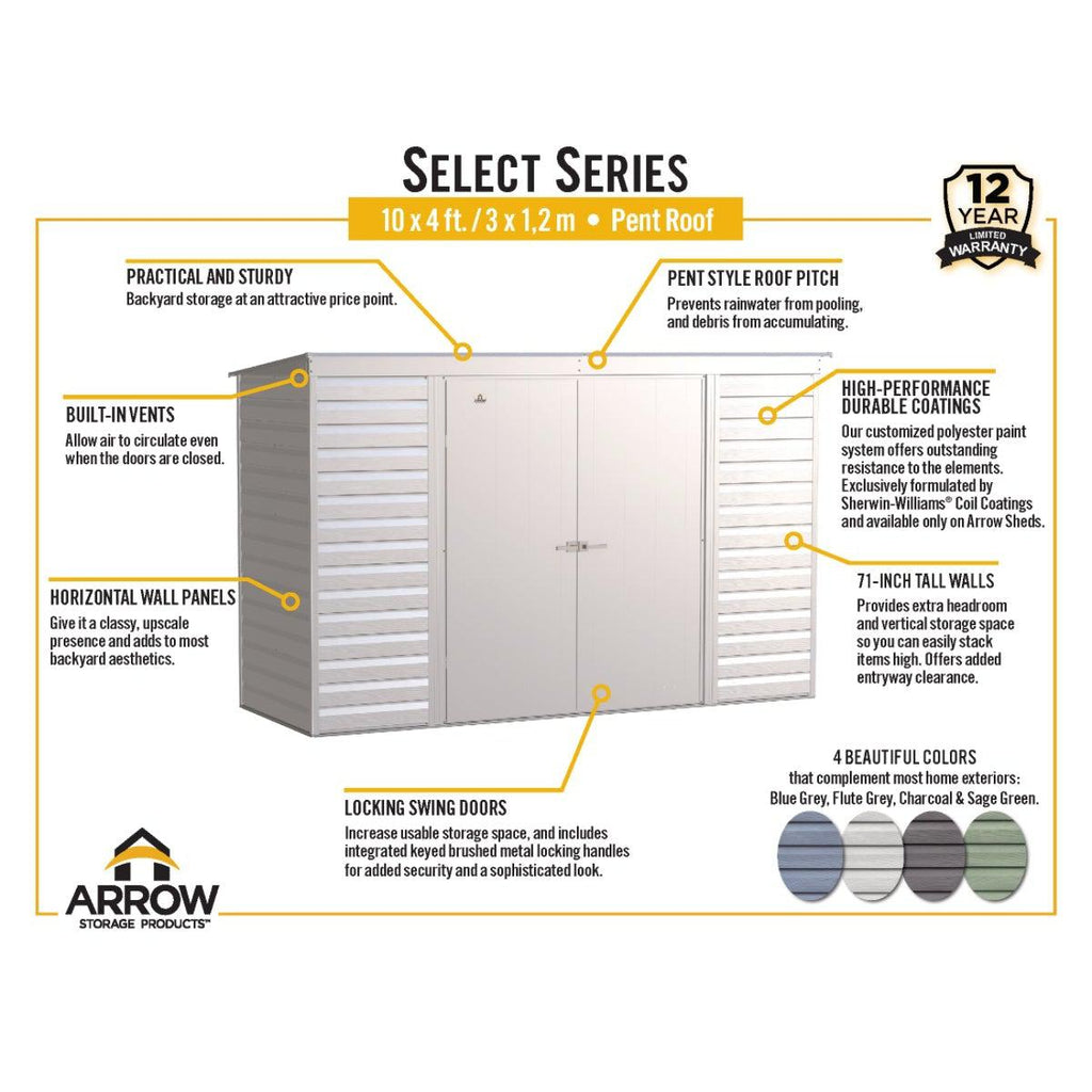 Arrow Select Steel Storage Shed 10 x 4 ft. | Pent Roof