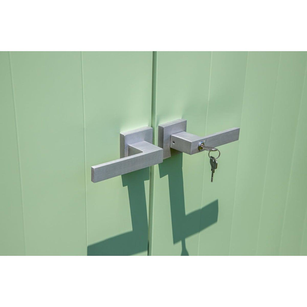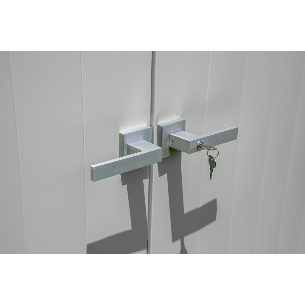 - Swing doors increase usable storage space and include integrated keyed brushed metal locking handles for added security and a sophisticated look