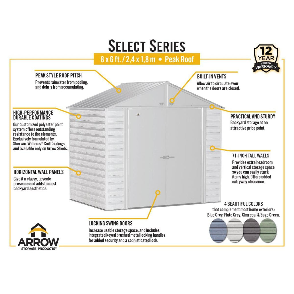 Arrow Select Steel Storage Shed 8 x 6 ft.