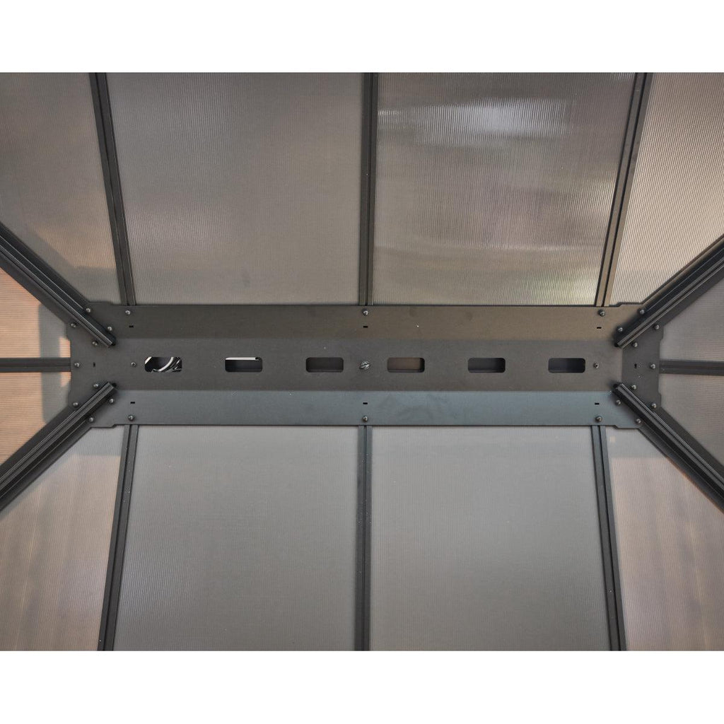 - Resilient Panels: The 6mm virtually unbreakable, 100% UV protected, grey opaque twin-wall polycarbonate panels are high impact, shatter resistant, and insulating. No need to remove panels for Winter.