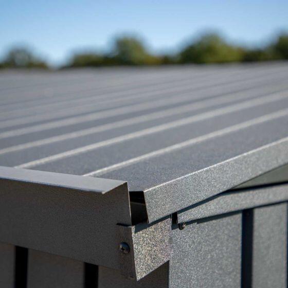 - DURABLE AND AESTHETICALLY APPEALING: This steel storage shed has a Wrinkle Paint textured finish in Anthracite. This finish is not only appealing but offers increased resistance against harmful weather and corrosion.