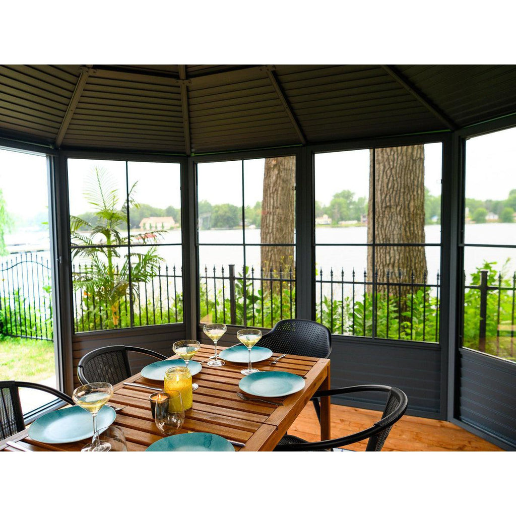 Extend the pleasure of your outdoor space with our Florence 12x15 ft. solarium. This extension to your home will provide the space to gather all your loved ones for an evening of dining and relaxing, or it can be used as the perfect shelter for your spa. This beautiful addition to your outdoor living space will shelter you from the elements for years to come while adding value to your property. This unit can be left in place all year round, saving you the hassle of setting up and taking it down at the end of the season.