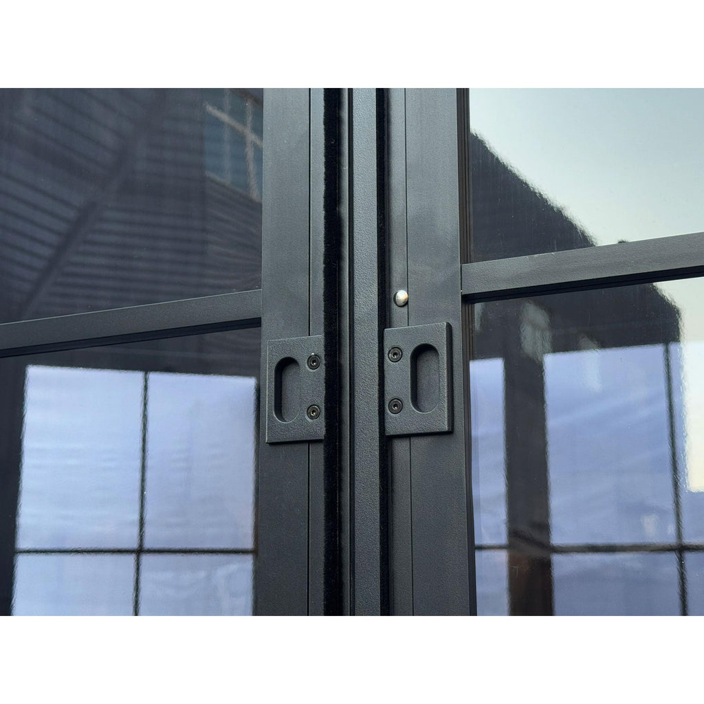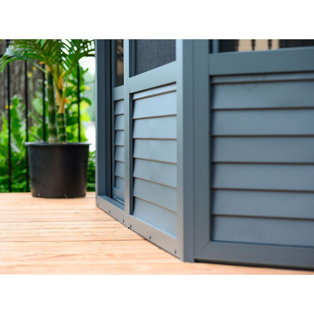 The Florence solarium is constructed from extruded aluminum and features elegant galvanized steel roof panels, two sliding doors and PVC windows that can slide into 5 different positions. This solarium has been carefully designed to withstand exposure to rain, snow and UV rays.