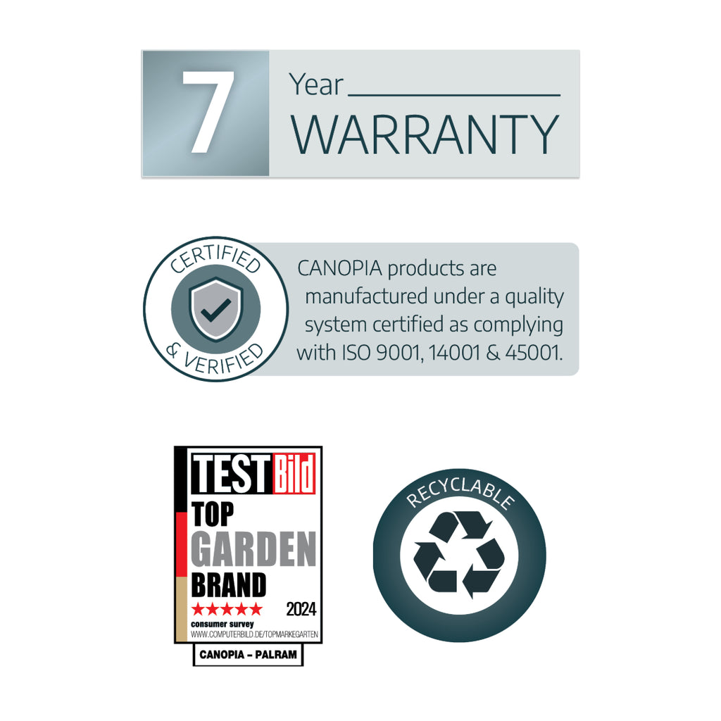 - Easy-to-assemble, sturdy UV-protected resin frame, held together with ‘Pin & Lock’ resin connectors