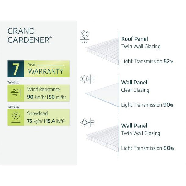 - Built with heavy-duty multi-wall glazing for controlled light exposure and greater insulation