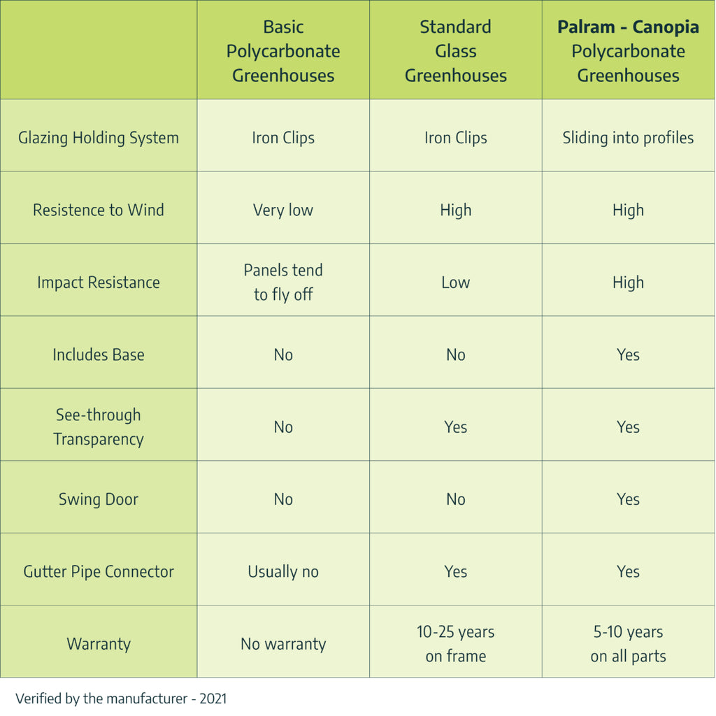 - Highly resistant, safe polycarbonate greenhouse (blends Fine Shield Technology™)