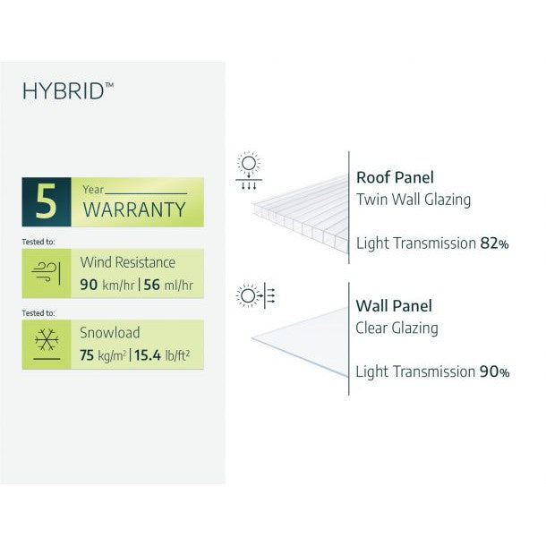 Canopia by Palram's Hybrid 6x8 ft. Greenhouse offers a perfect growing environment with polycarbonate panels to balance your plants' needs. 4mm twin-wall roof panels have double heat retention while 90% light transmission side panels block UV rays. Durable aluminum frame and integrated gutter system. Plus a roof vent and hinged door for adjustable ventilation. Easy to assemble with no special tools. Enjoy a longer growing season and protect your plants with the Hybrid Greenhouse!