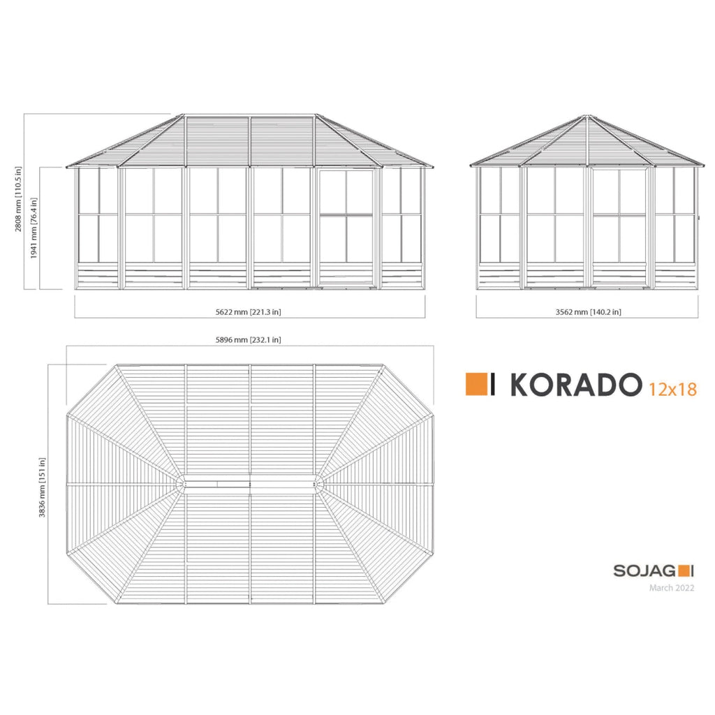 Bring your backyard to life with the addition of the Sojag Korado Solarium 12 x 18 ft. Enjoy gathering close family and friends for an evening of dining and relaxation, or use it as the ideal refuge for your hot tub. The Korado features a strong aluminum frame with stylish galvanized-steel roof panels. Your outdoor living space will benefit from this impressive shelter and add value to your home for years to come.