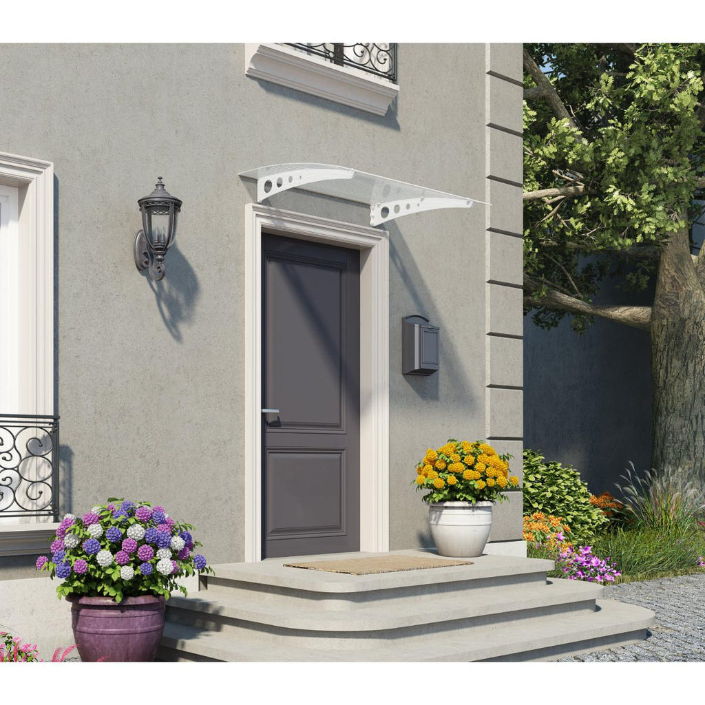 Shield your home from sun, rain & snow with Lyra Door Awning. White frame and clear polycarbonate panels create a great first impression. 80% light transmission, 100% UV protection & maintenance-free. Easy assembly & leak-free. Get your Canopy, and start protecting your entry now.