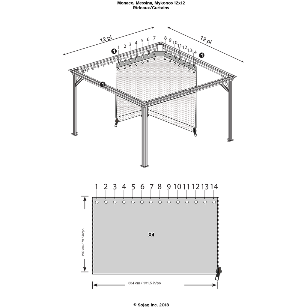 Disclaimer: Designed for Sojag Monaco, Messina, Mykonos, and Moreno 12 x 12 ft. gazebos, may not 100% fit other brand gazebos. Please refer to the drawing of dimensions or contact us to make sure this will fit your gazebo before purchase. Returns due to "not fitting other brands" will NOT be accepted.