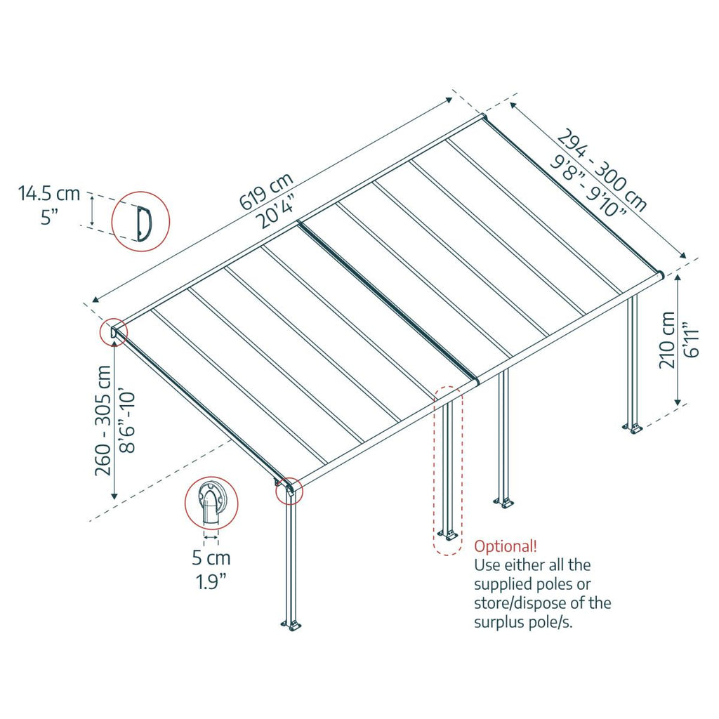 Ideal for entertaining, celebrating, or relaxation, the Olympia 10x20 ft. patio cover offers robust protection with powder-coated aluminum and virtually unbreakable, UV-protected polycarbonate roof panels. Glam up your garden and add elegance to your home with this Olympian-style outdoor space to be enjoyed all year round.