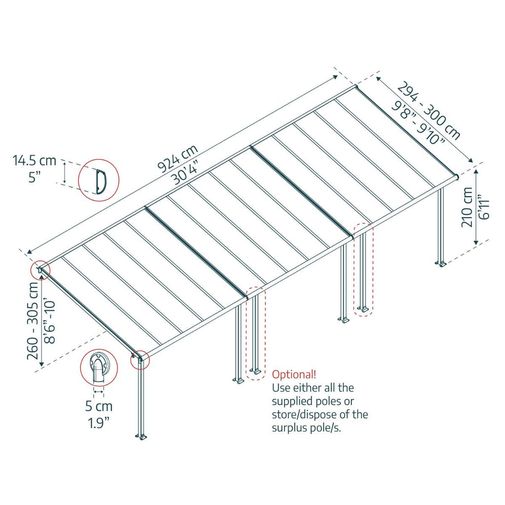 Ideal for entertaining, celebrating, or relaxation, the Olympia 10x30 ft. patio cover offers robust protection with powder-coated aluminum and virtually unbreakable, UV-protected polycarbonate roof panels. Glam up your garden and add elegance to your home with this Olympian-style outdoor space to be enjoyed all year round.
