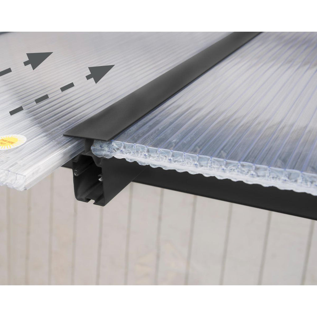 Engineered to meet harsh weather conditions, heavy snow loads and high winds Virtually unbreakable, 16 mm multiwall polycarbonate roof panels are high impact, shatter resistant, 100% UV protected, and provide complete UV blockageSpecifications
