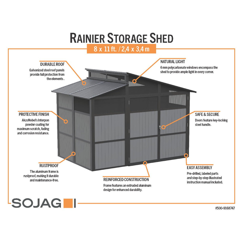 Rainier Aluminum Frame Storage Shed 8 x 11 ft | Sojag