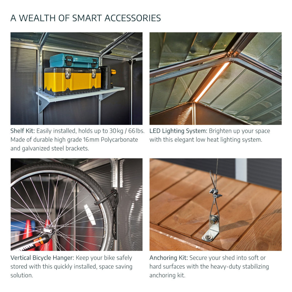 - Secure your shed to the ground with the included anchoring kit to make the most of your sturdy structure, increase its stability and improve its weather resistance