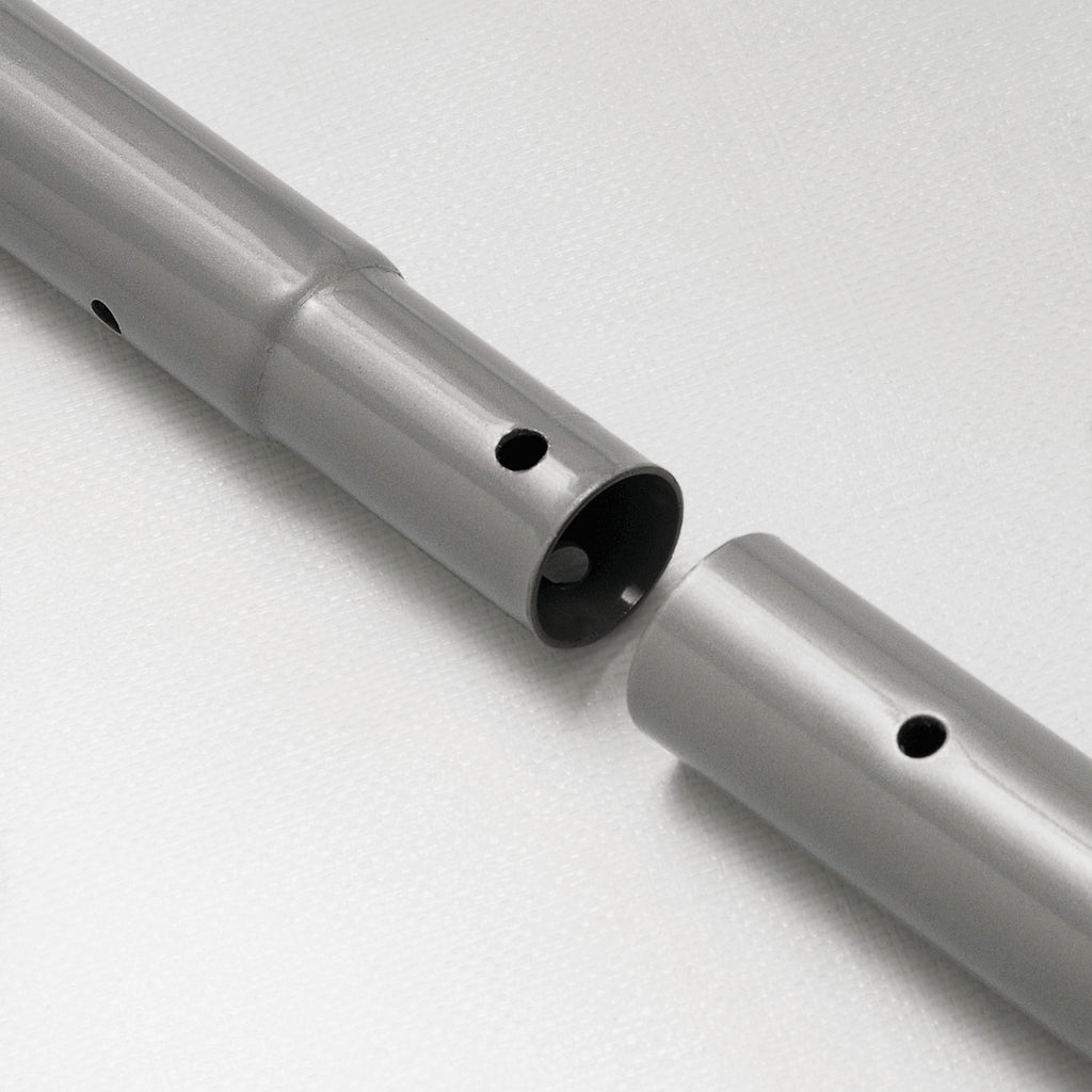 - Universal steel foot plates for an easy and solid connection to ground anchors, cement, or pony walls