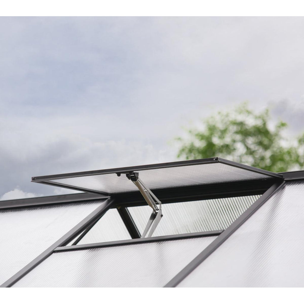 - Roof vents are controlled manually but can be fitted with Palram Greenhouse
