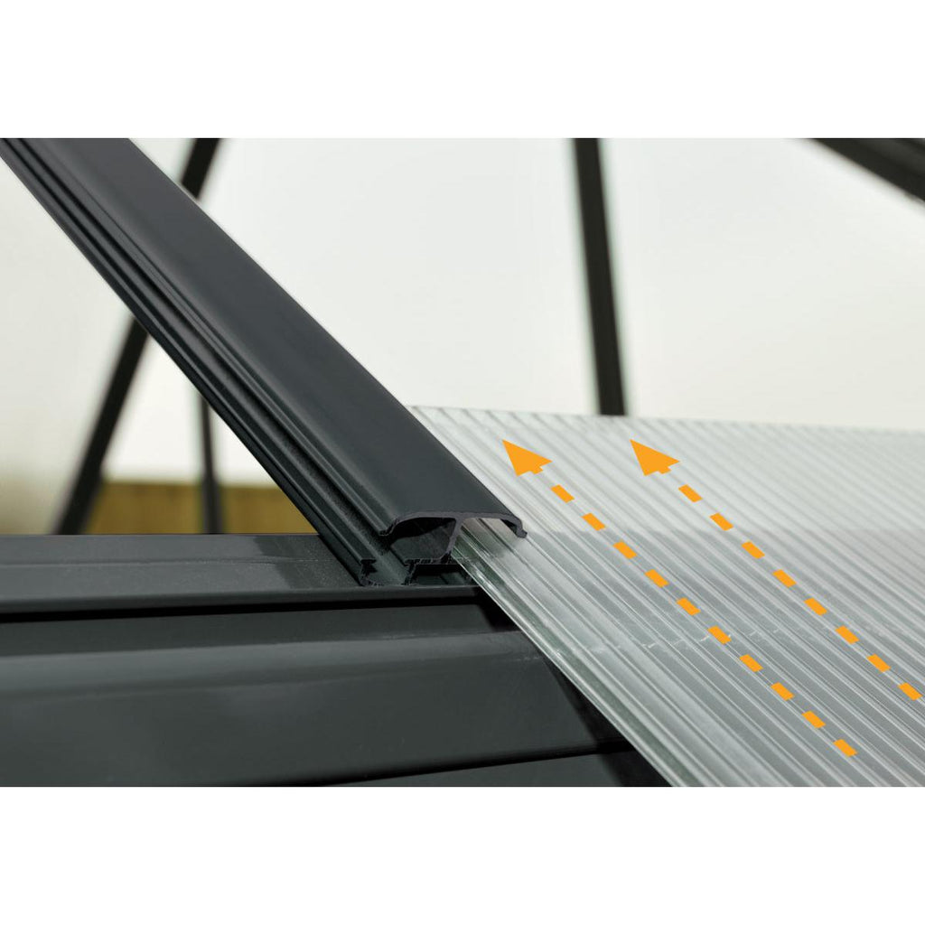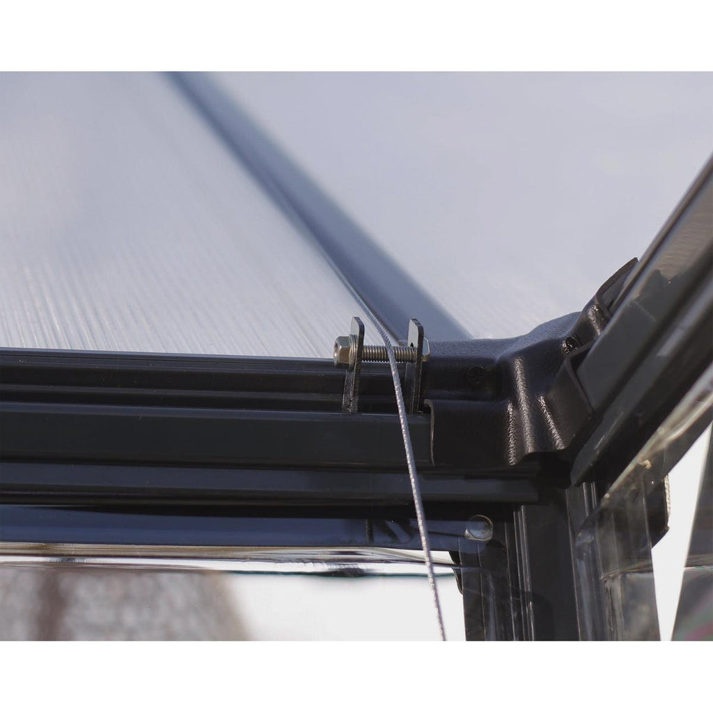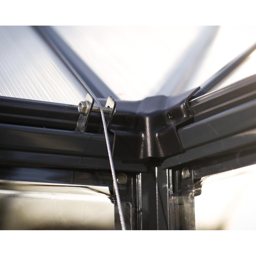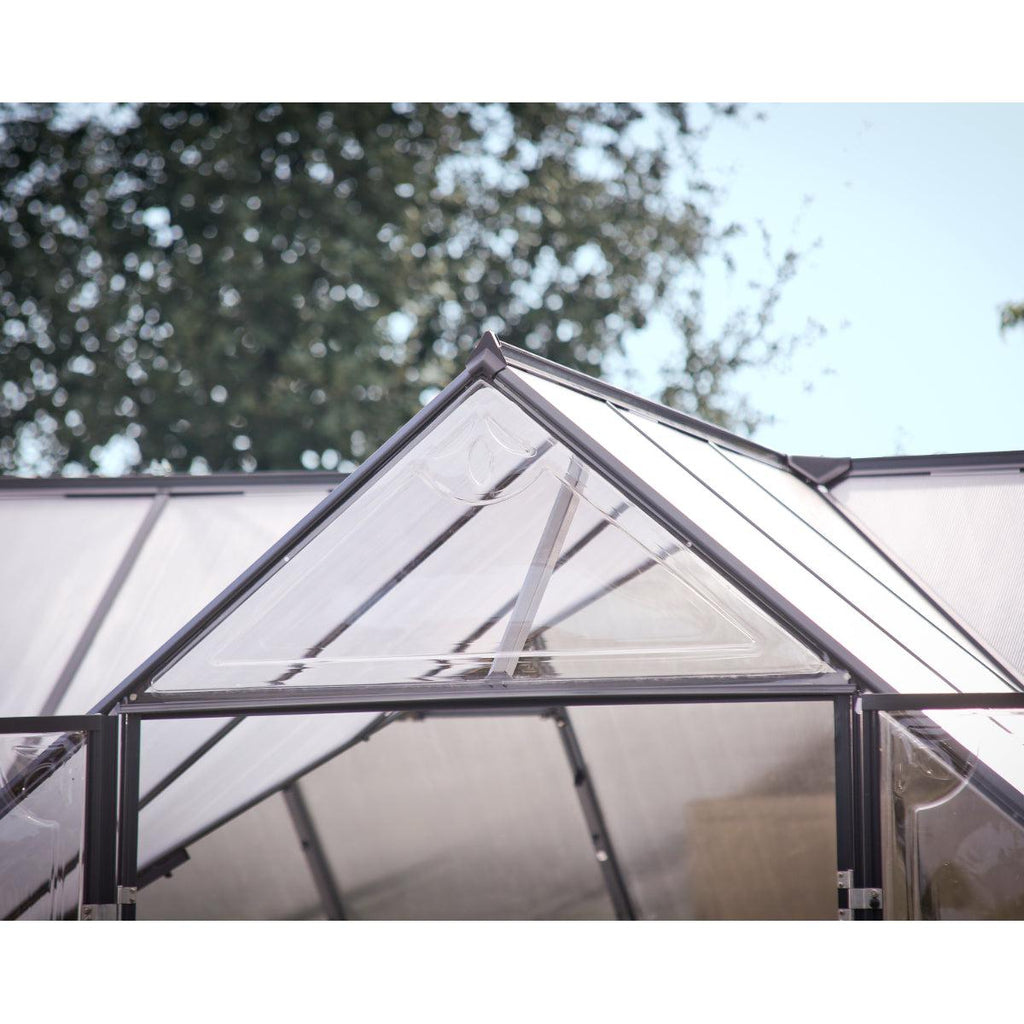 - Roof vents are controlled manually but can be fitted with Palram Greenhouse