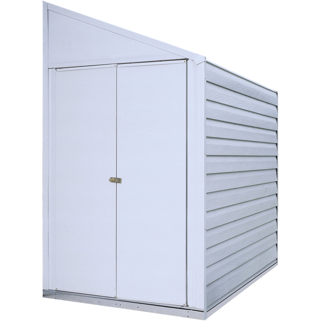 The Yardsaver 4 x 7 ft. shed provides a unique, cost-effective storage solution. Its horizontal paneling fits easily in narrow, tight spots, and looks attractive when placed against a wall. Its versatility makes it ideal for storing a variety of items, such as trash cans, bicycles, garden tools, wood, and more.